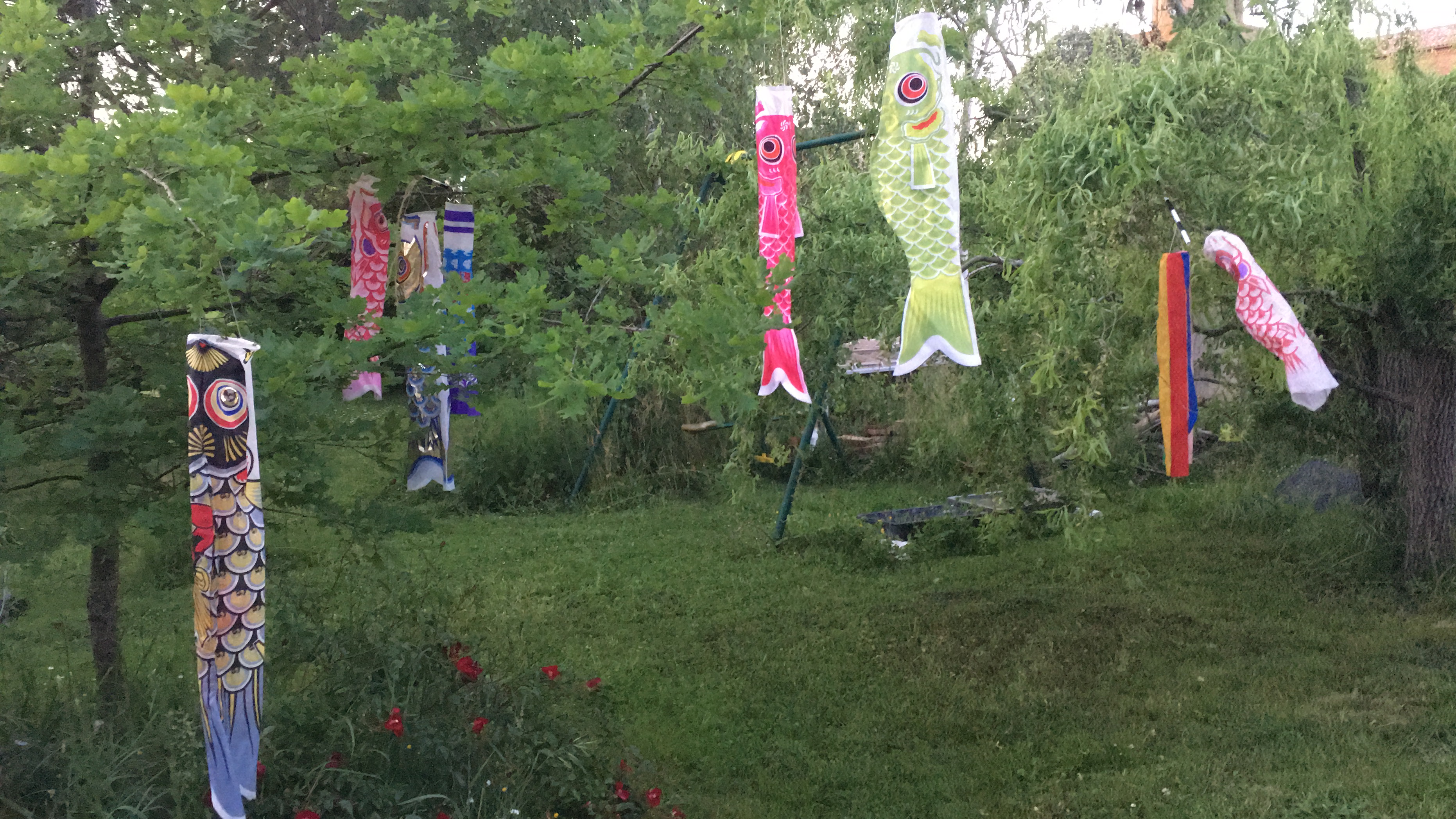 … pendant que flottaient au vent les koinobori , carpes colorées qui célèbrent les enfants le 5 mai.