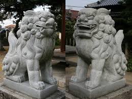 On retrouve cette opposition des bouches ouvertes et fermées dans d’autres statues destinées à protéger l’entrée d’un temple. C’est le cas des lions (shishi) et des chiens-lions (koma-inu) que l’on trouve par paire de chaque côté de la porte principale d’un temple, Shinto ou Bouddhiste.