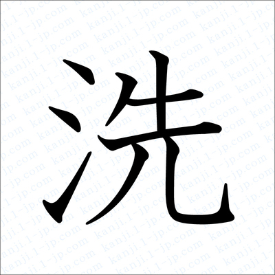 Dans le premier caractère « sen » ( laver ) on retrouve bien le radical de l’eau : 氵 ,
