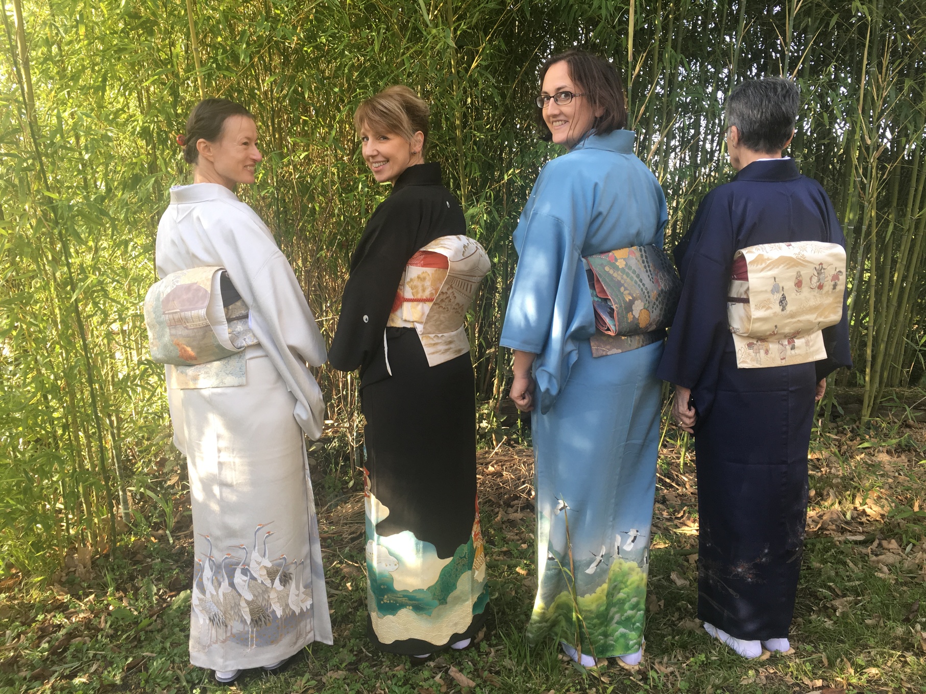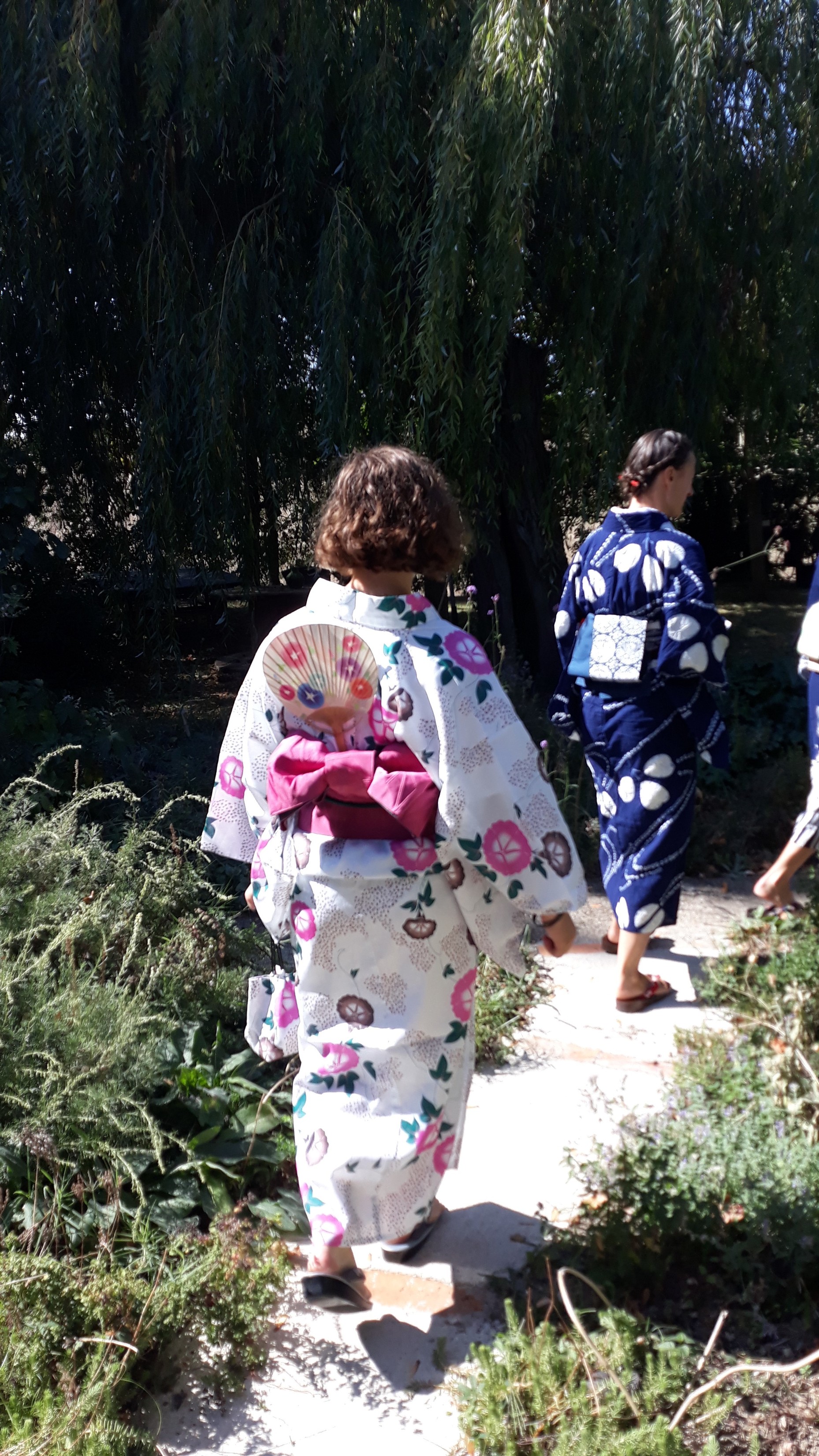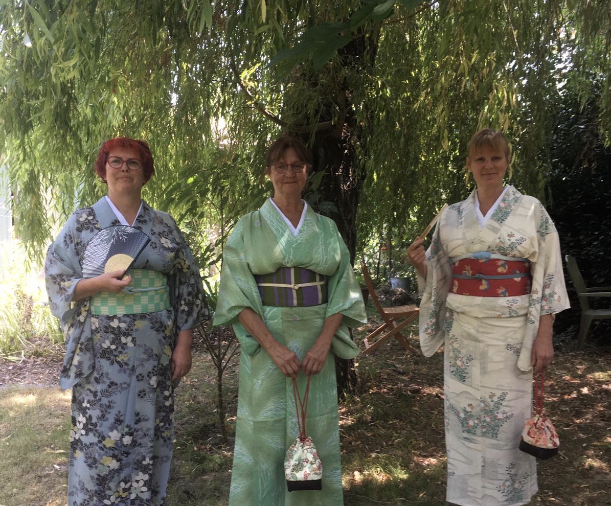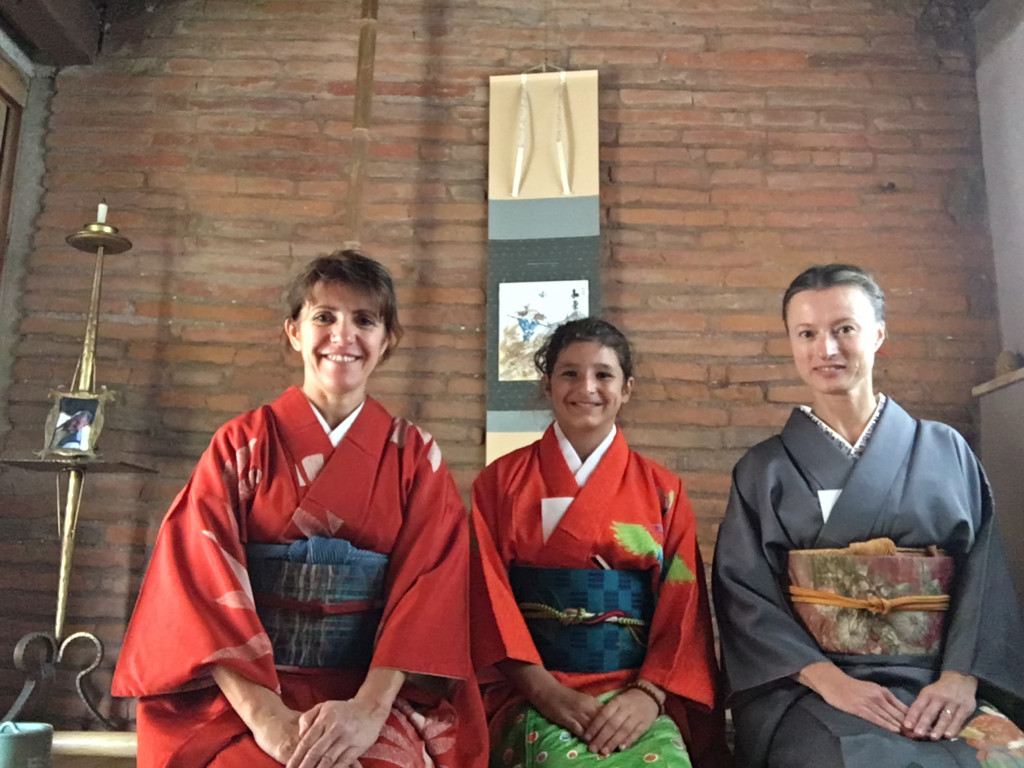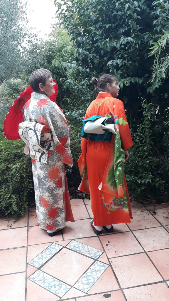 Pour le dernier atelier « art du kimono » 着付け教室 de l’année, le soleil était au rendez-vous. On était toutes habillées dans de beaux kimonos de soie doublée….presque trop chaud avec 18 °C en décembre !!!