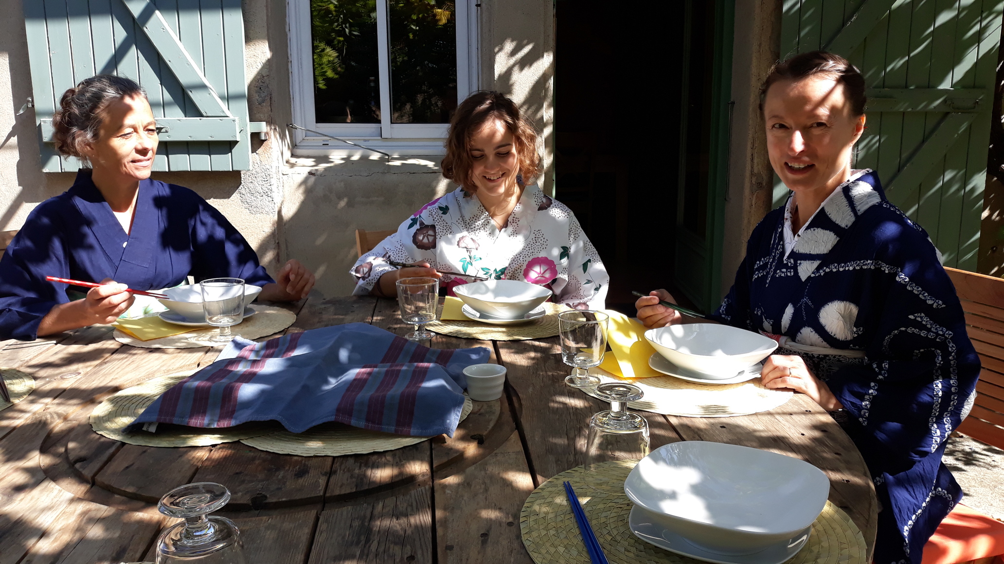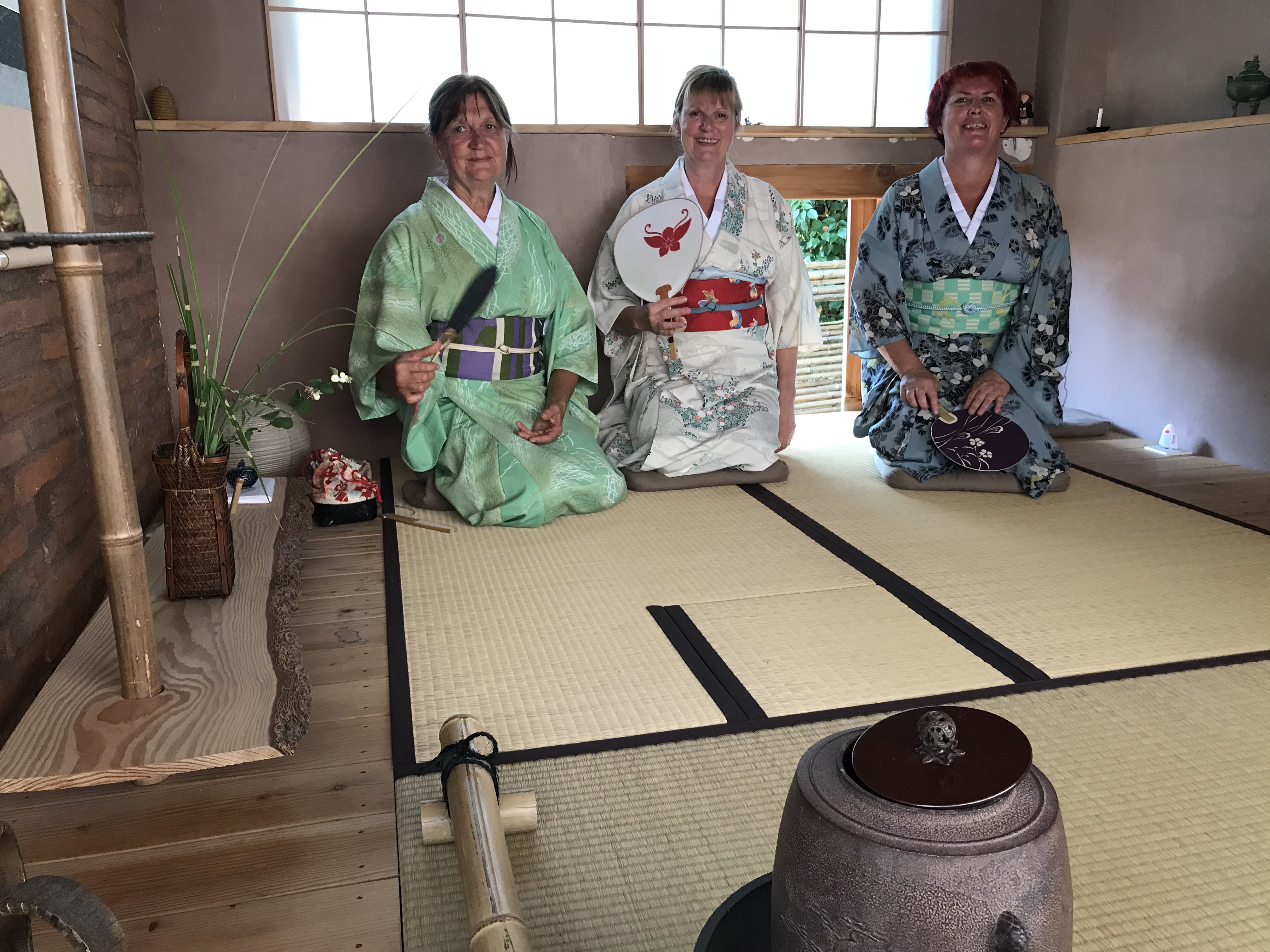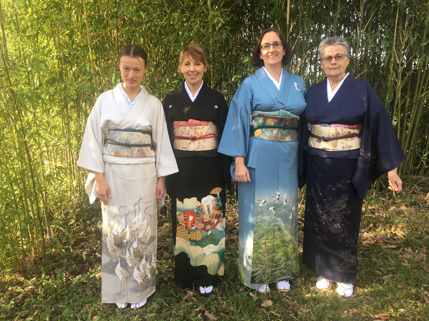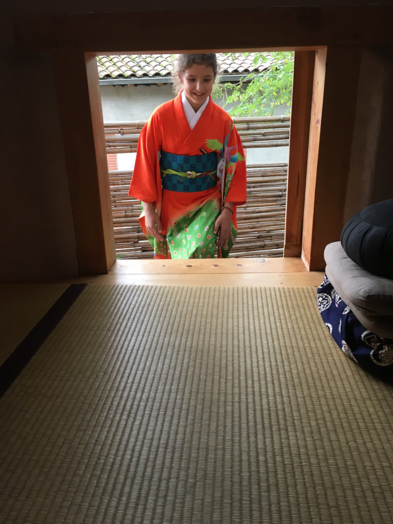 Pour le dernier atelier « art du kimono » 着付け教室 de l’année, le soleil était au rendez-vous. On était toutes habillées dans de beaux kimonos de soie doublée….presque trop chaud avec 18 °C en décembre !!!