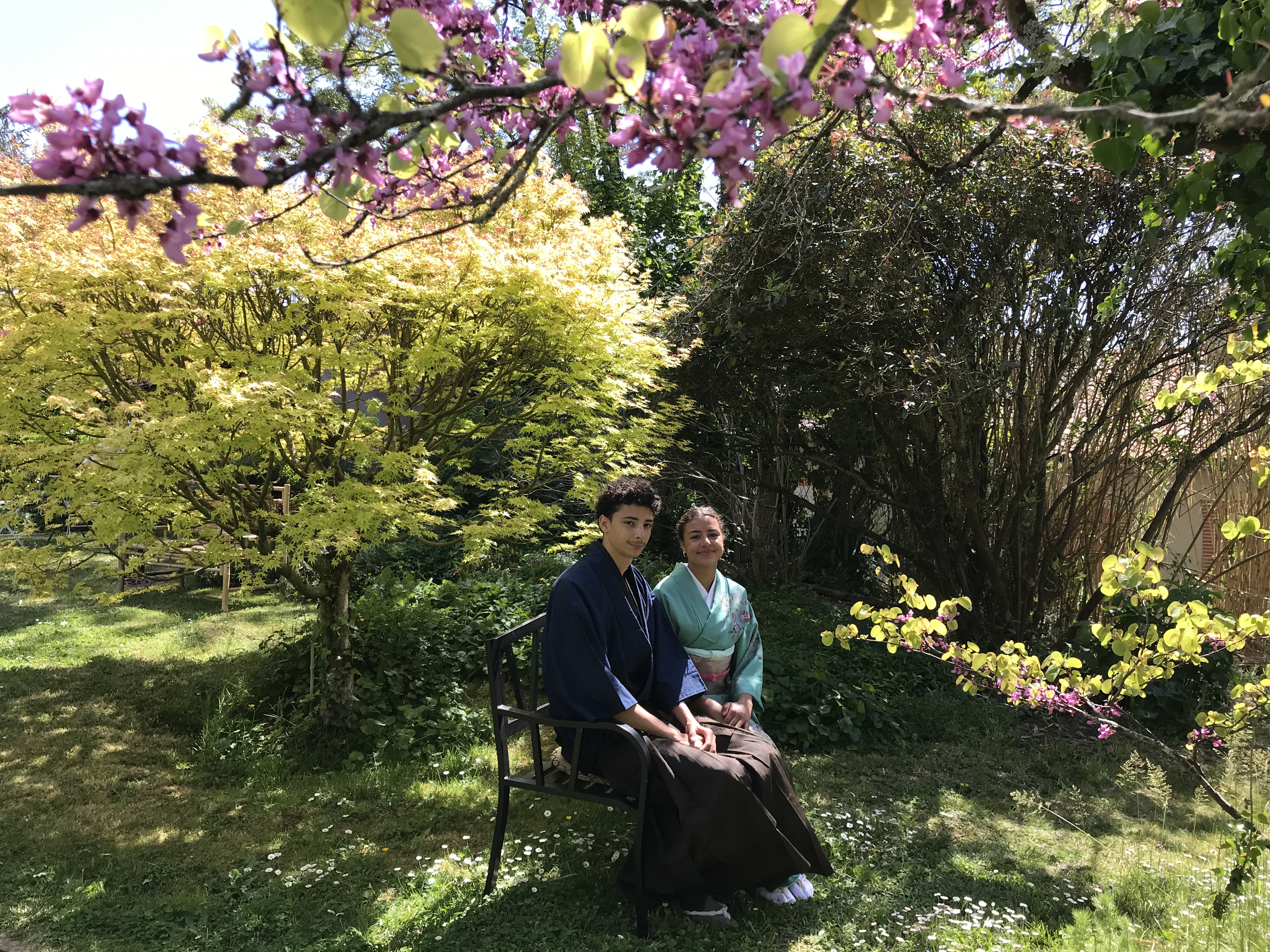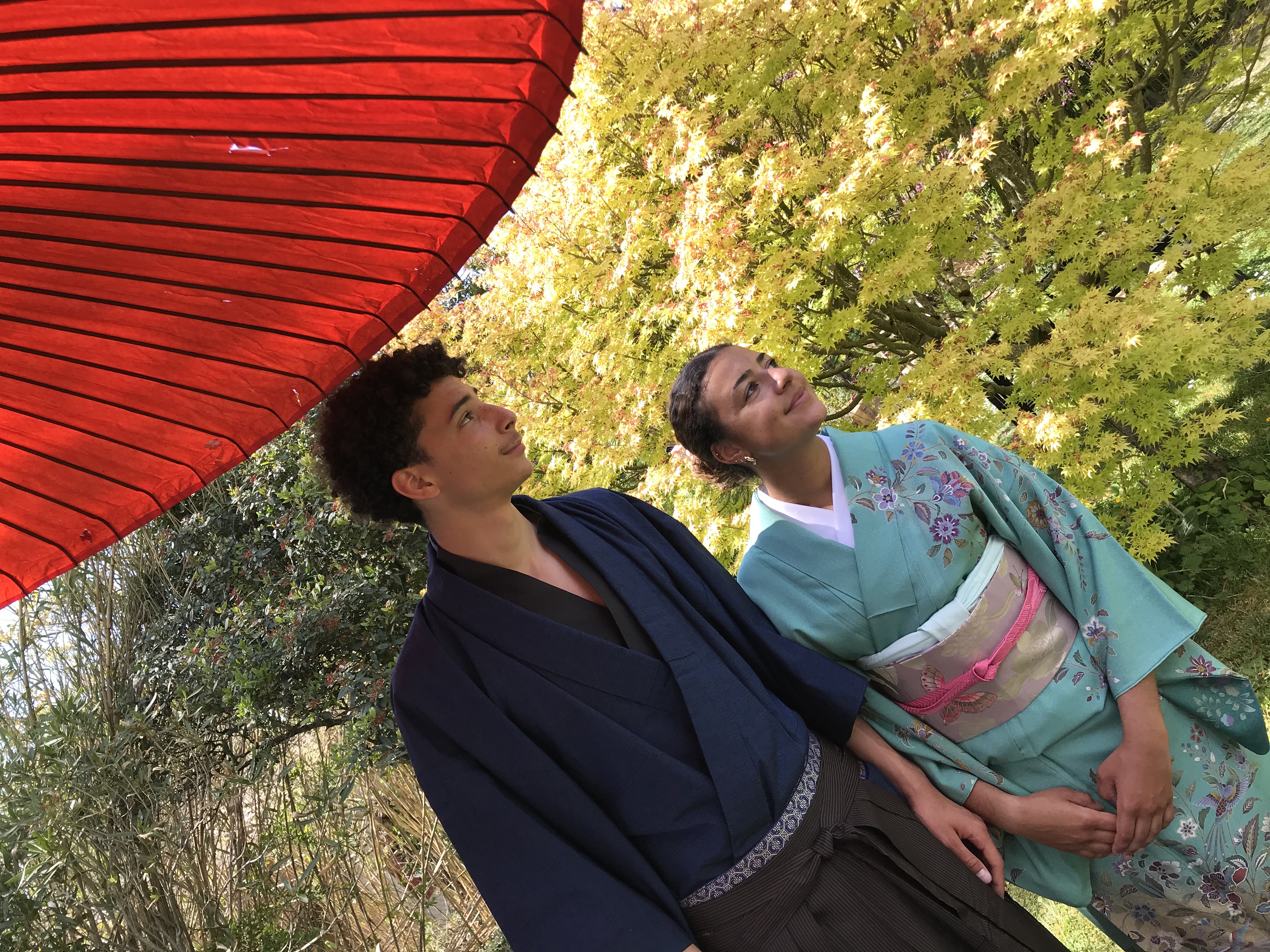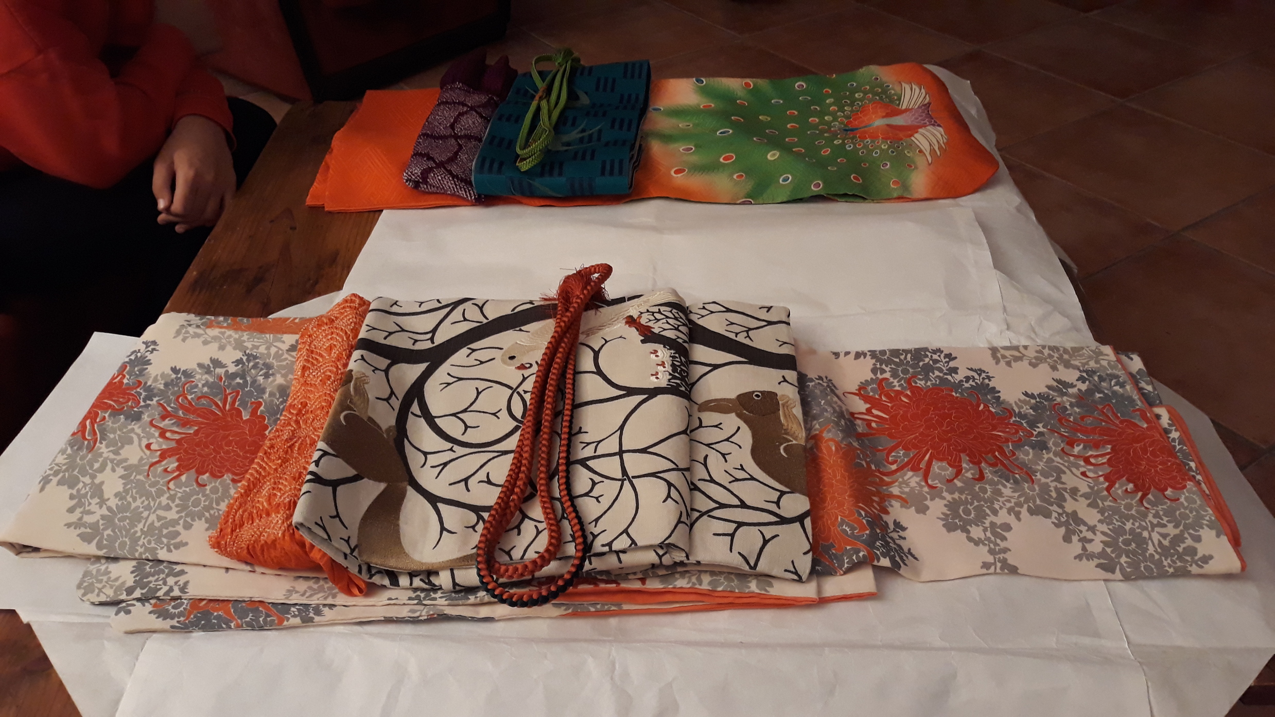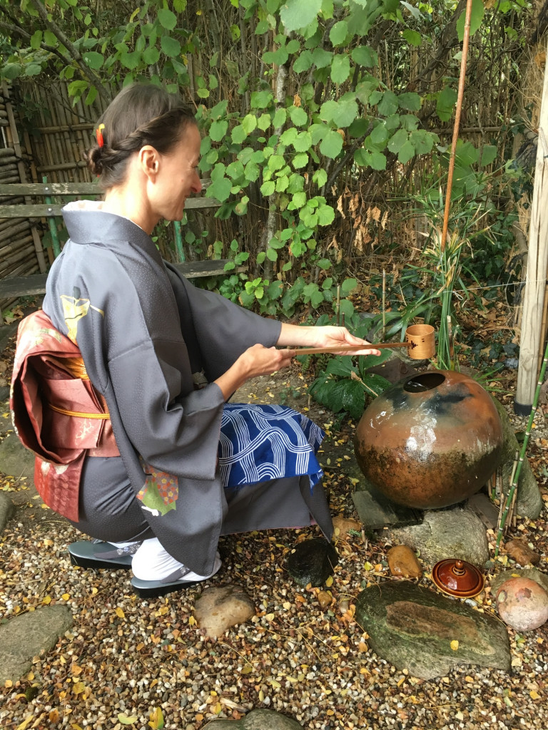 Pour le dernier atelier « art du kimono » 着付け教室 de l’année, le soleil était au rendez-vous. On était toutes habillées dans de beaux kimonos de soie doublée….presque trop chaud avec 18 °C en décembre !!!