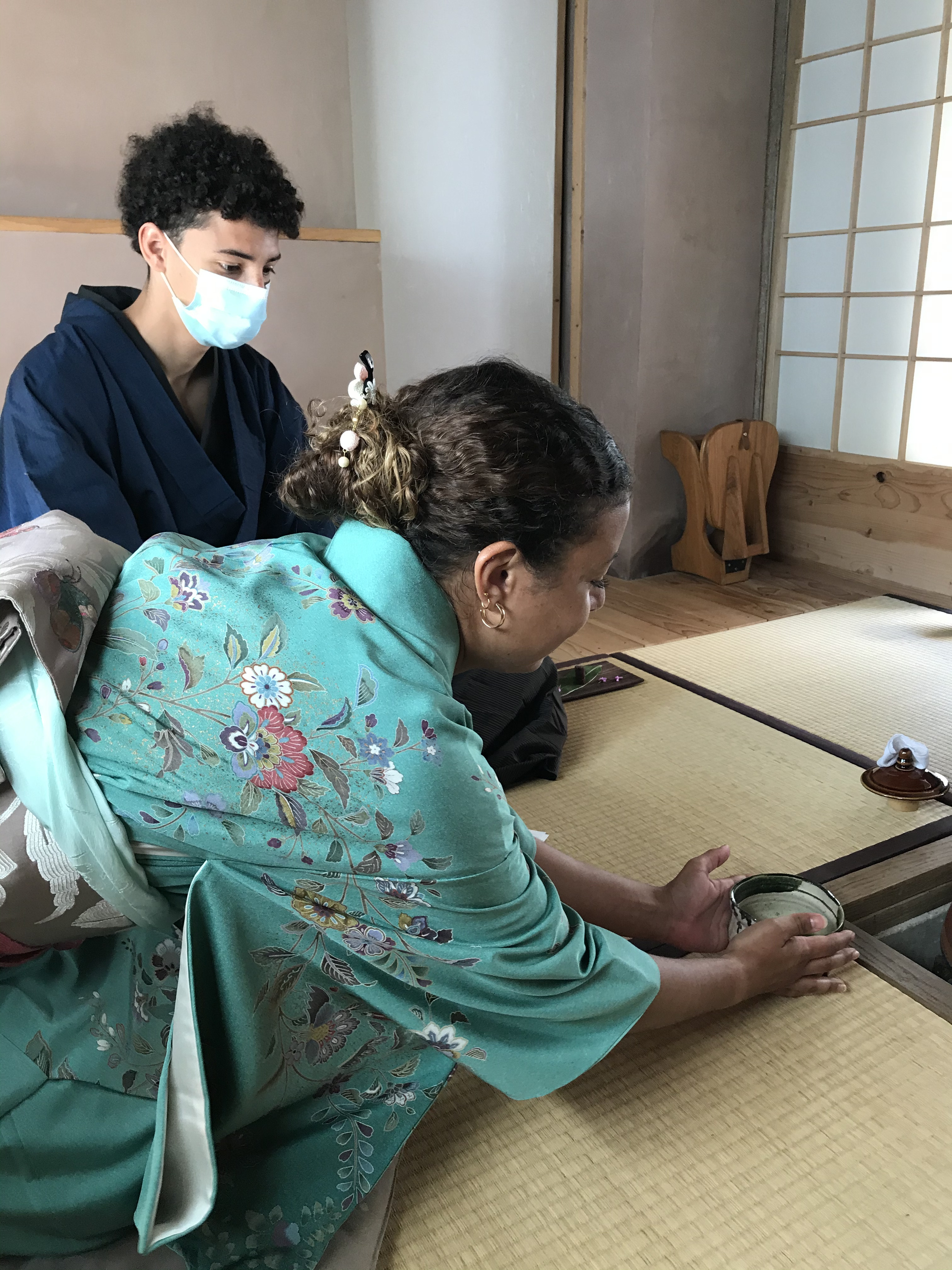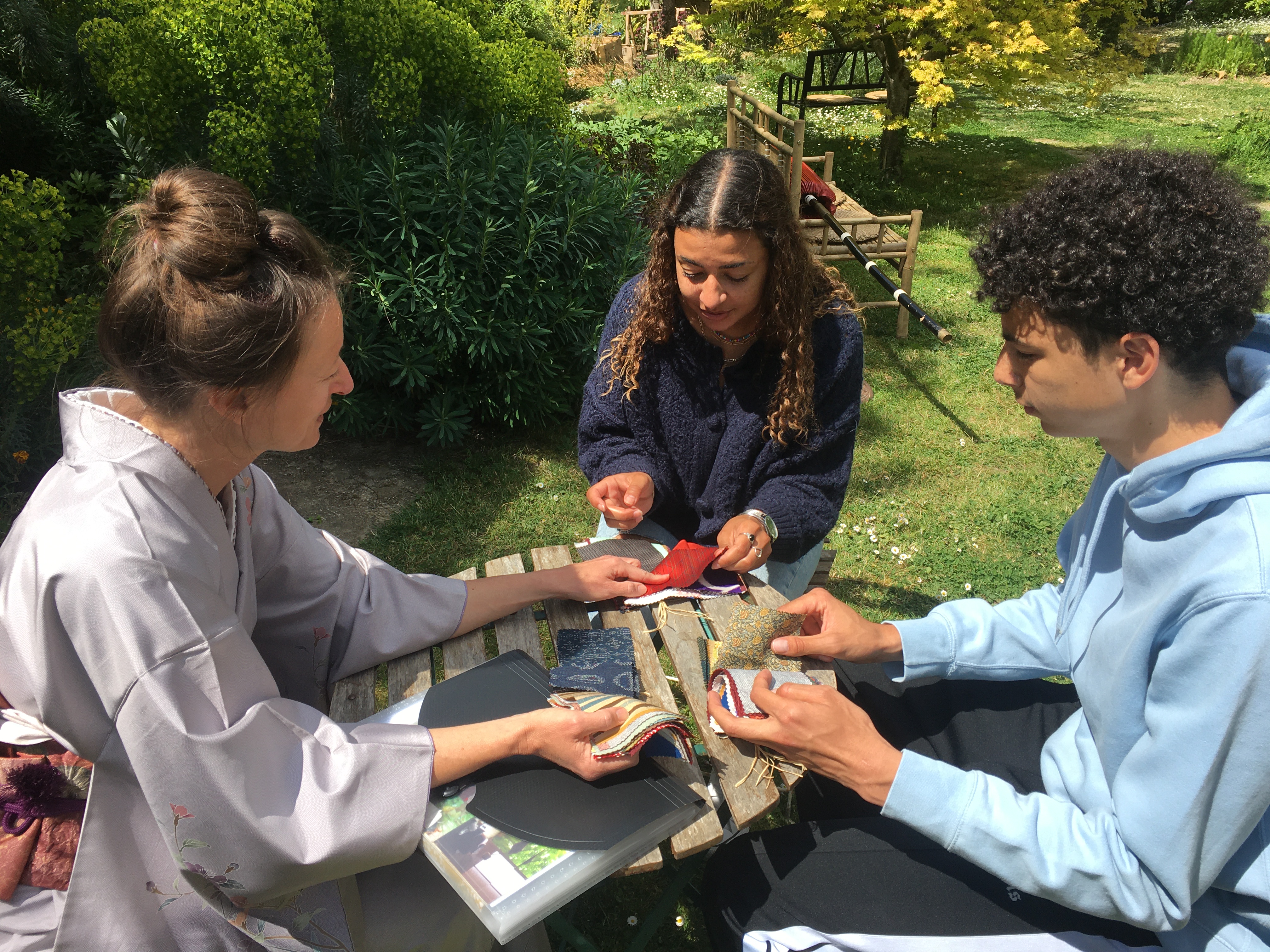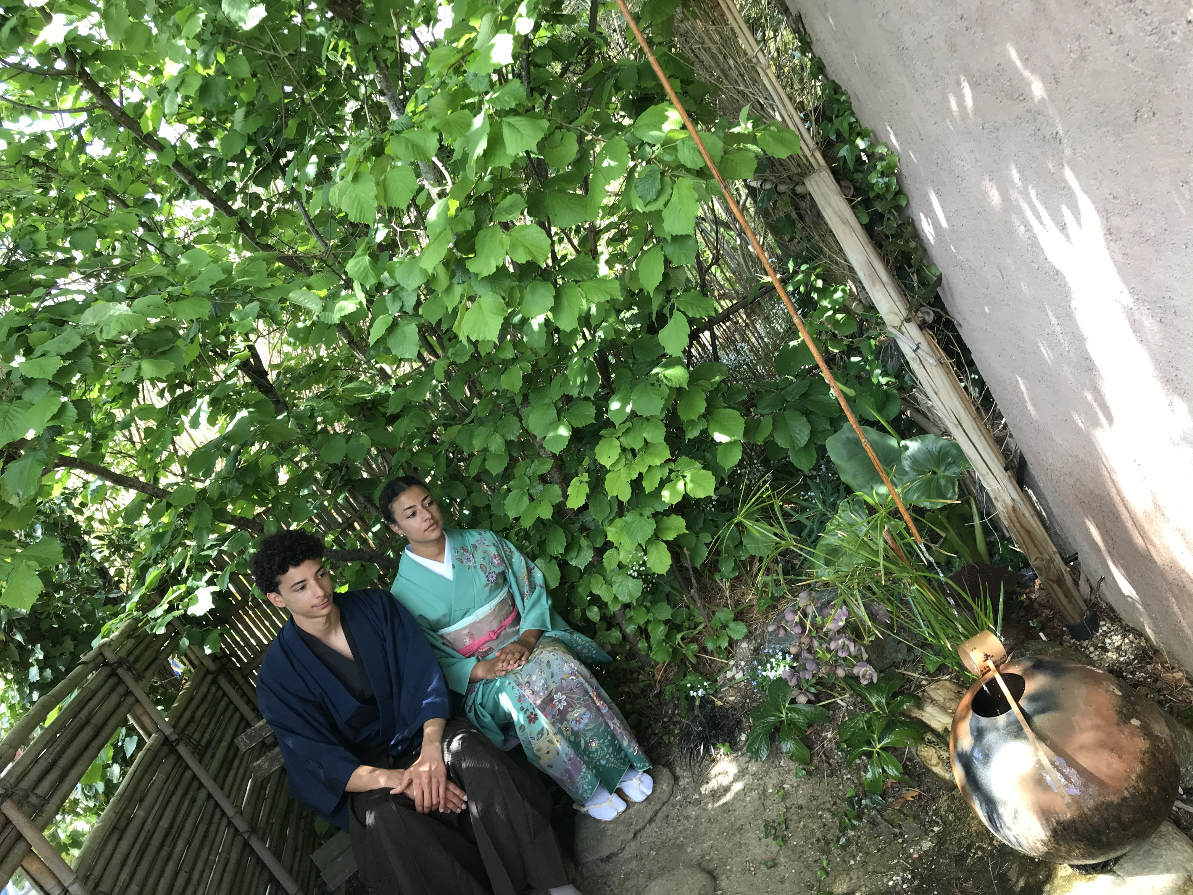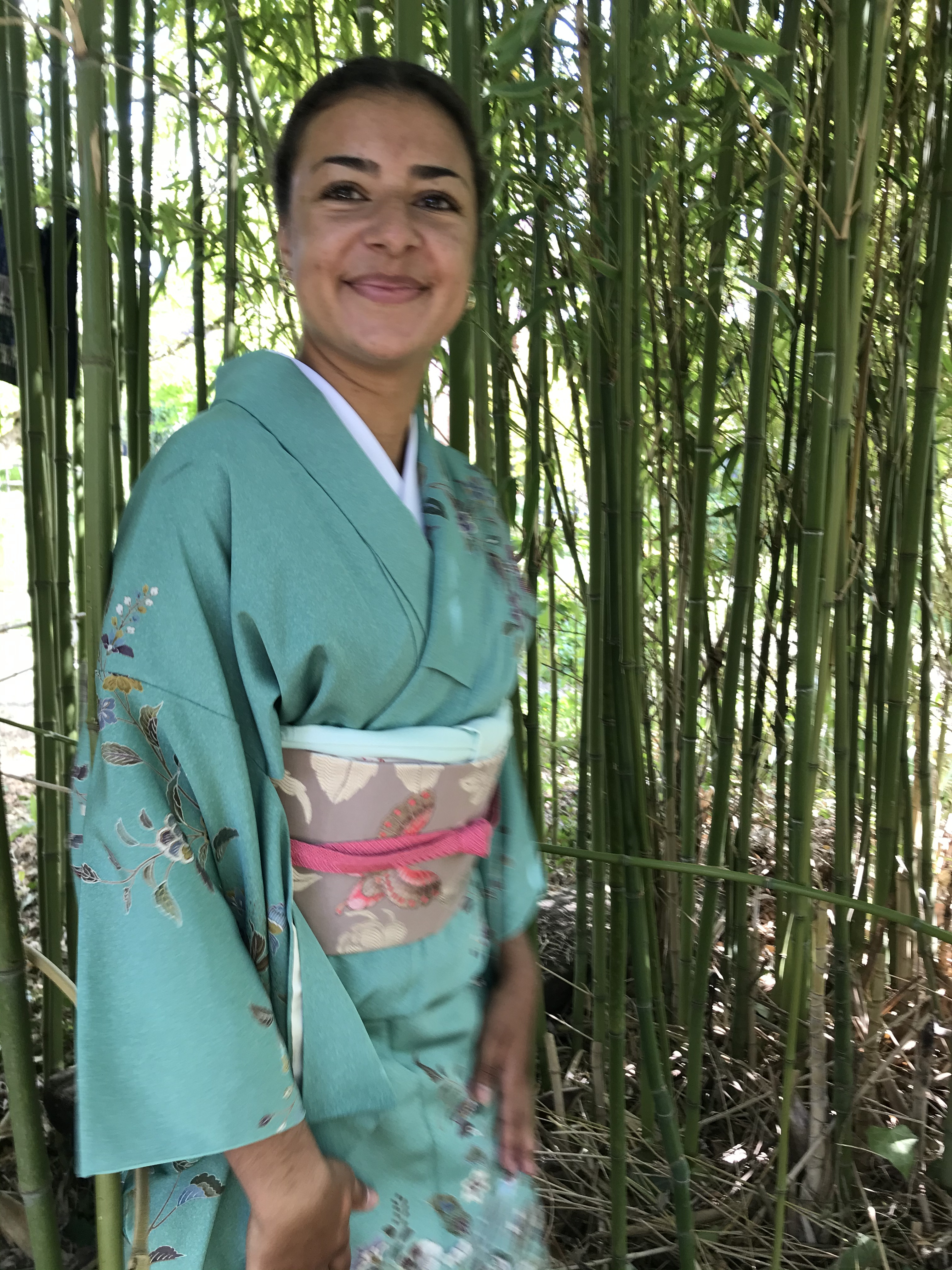 CORINNE est de retour pour une nouvelle expérience d’art du kimono. Elle est déjà beaucoup plus autonome et arrive sans l’aide d’Anita à revêtir le sous-kimono, superposer les pans de kimono et garder les lignes horizontales… Le progrès est net ! C’est encourageant !